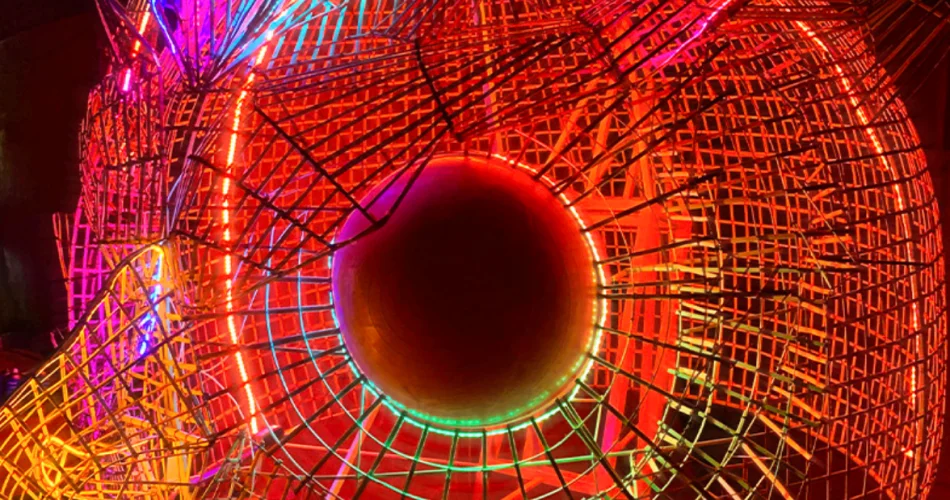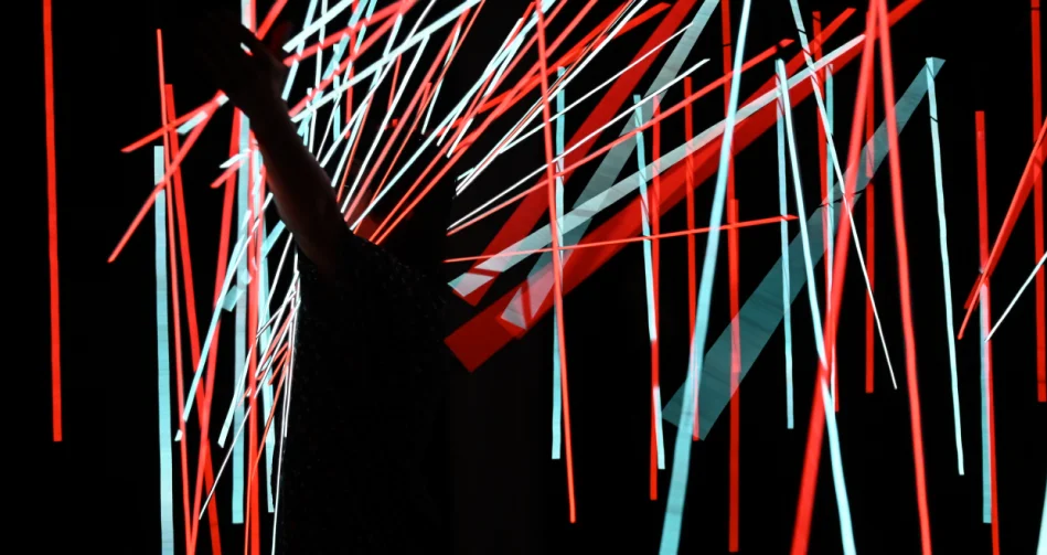 En la oscuridad de una caja negra, está compuesta de 100 iluminarias electroluminiscentes de color blanco y rojo, y un conjunto de sensores piroeléctricos, con fines interactivos, tanto en luz como en sonido.