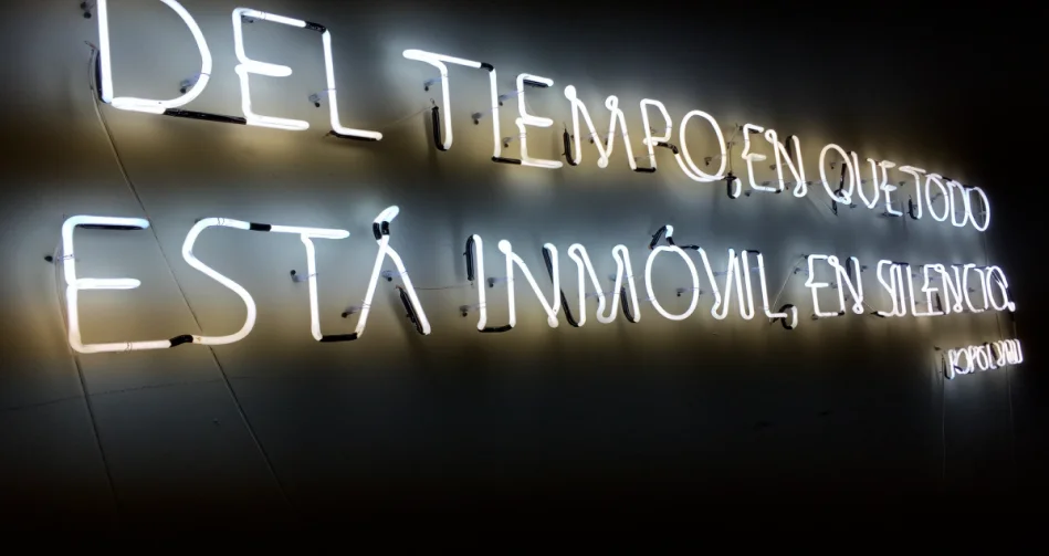 Frase del primer párrafo del libro sagrado del Popol Vuh, ahí se cuenta el mito originario-ancestral del mundo para la civilización Maya.